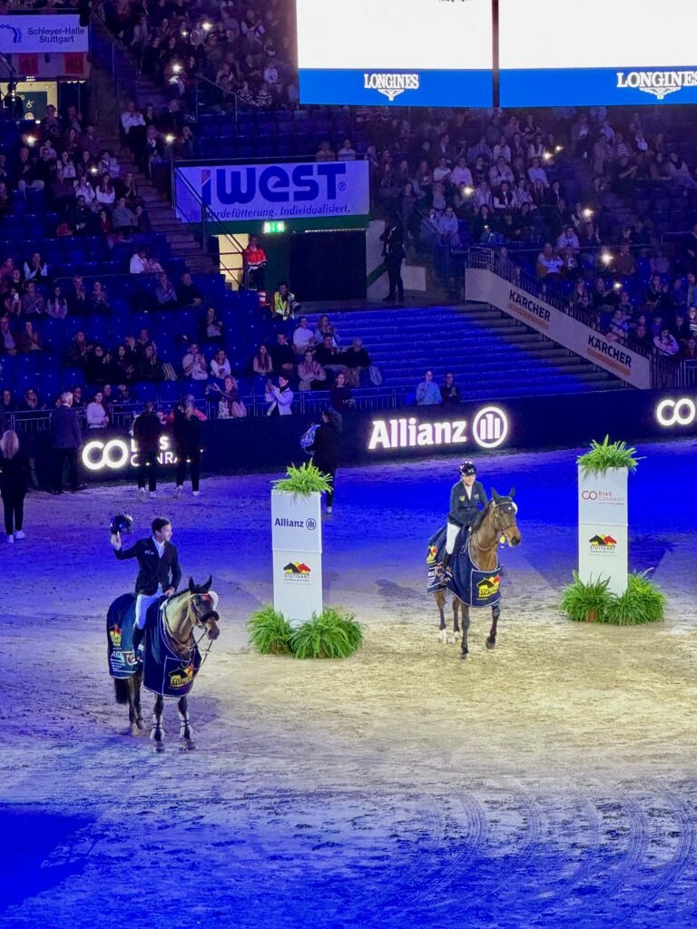 Dank Busfahrer Luis von der Fa. Karrer gelang dem Reitverein Buxheim in Stuttgart eine Punktlandung. Am Eingang wartete bereits eine Sonderausgabe des „Reiterjournals“ mit einer Vielzahl aktueller Themen aus dem Reitsport. „Der Samstag verspricht echten Weltklasse-Reitsport, der unsere volle Aufmerksamkeit verdient“ schrieb die Redakteurin und sie sollte Recht behalten. Erstes Highlight: Intern. dressage competition CDI4* mit einer überzeugenden Siegerin Anabel Balkenhol auf „High five“. Anschließend ein Springwettbewerb FEI CSI5* (Höhe 1,45 m): die Schweizerin Barbara Schnieper auf „Judy“ gewinnt den spannenden Wettkampf.